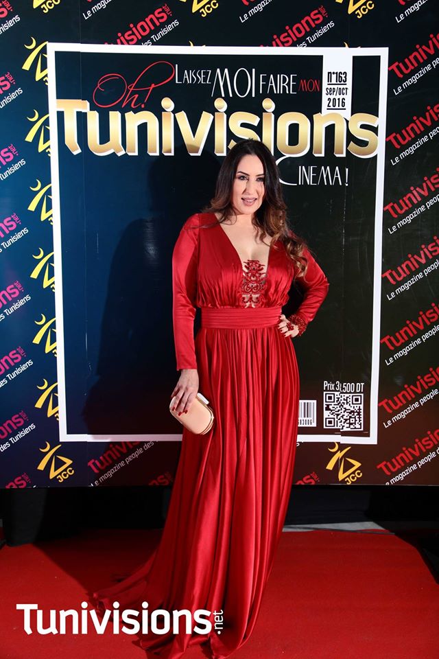 L’ANIMATRICE ET L’ACTRICE MERIEM BEN MOULEHOM JCC 2016 HABILLÉE PAR FATMA BOUCHIBA ET MUA PAR IMEN ALOUI