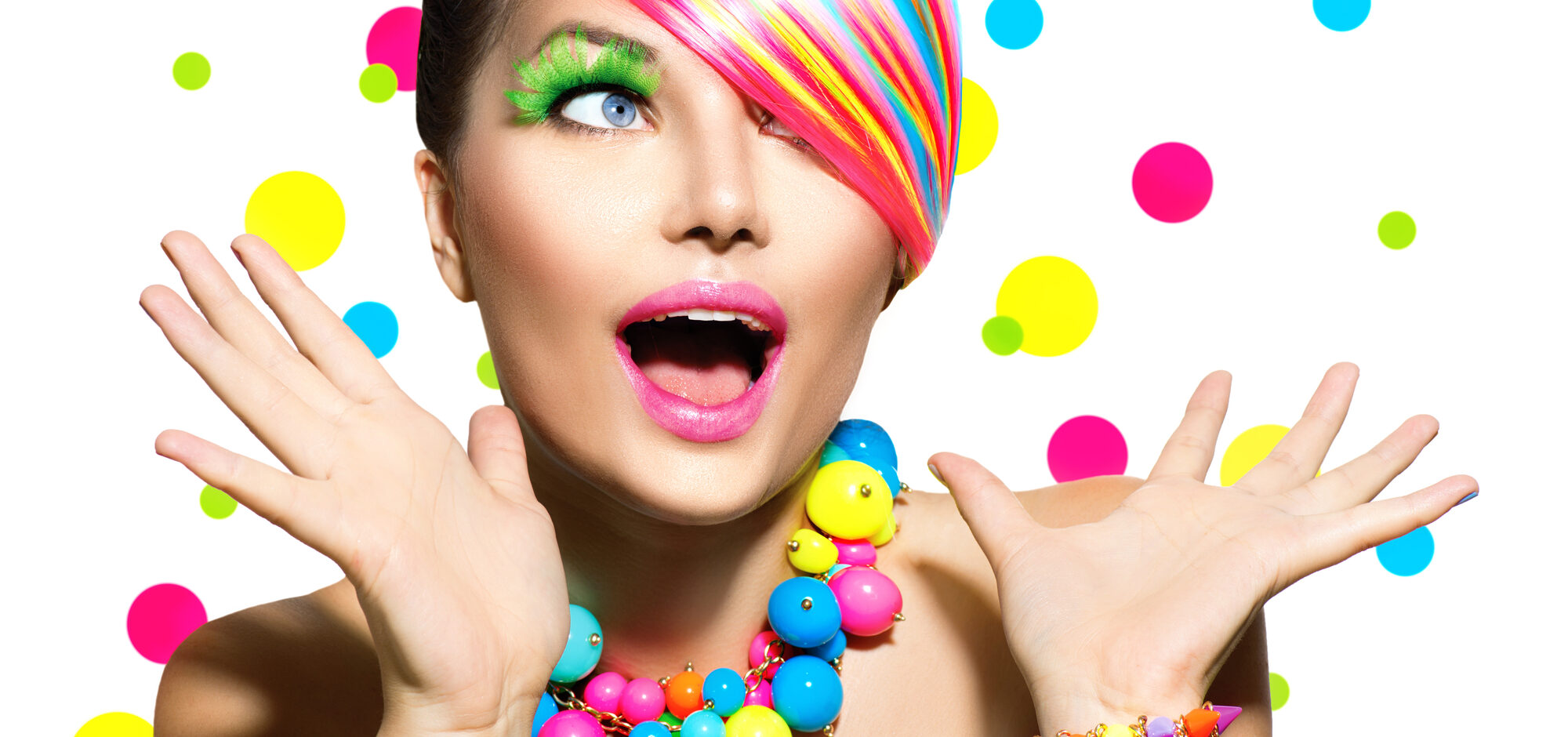 Beauty Portrait with Colorful Makeup Manicure and Hairstyle