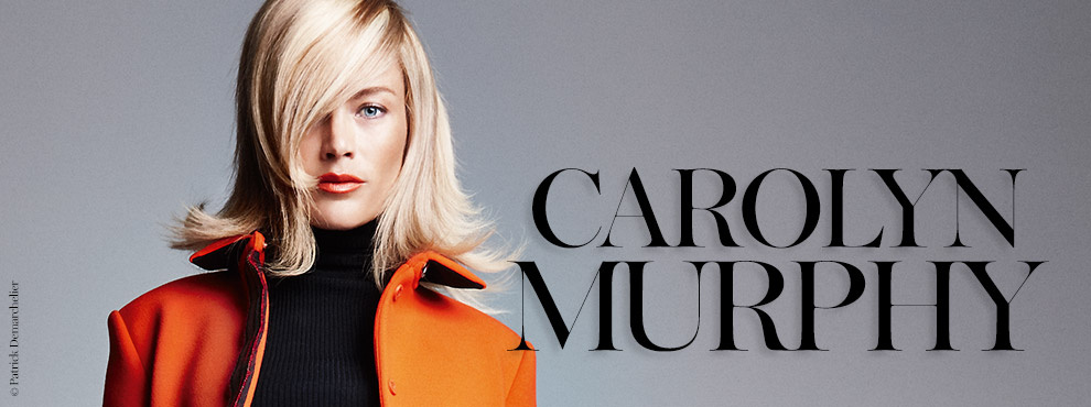 PARCOURS CAROLYN MURPHY Carolyn Murphy est née le 11 août 1975 à Fort Walton Beach en Floride. En 1990 elle est repérée à New York par un agent scout de l’agence Women Model Management et décroche rapidement ses premiers contrats en Floride. Après son diplôme au lycée Carolyn déménage à New York tout en continuant ses études à l’Université de Virginie. La jeune américaine se fait connaître pour sa coupe garçonne et sa couleur blonde platine contrastant avec les canons de beauté de l’époque. En 1994 Carolyn participe à la campagne printemps-été de Prada et pose trois fois au cours de l’année 1996 en couverture de Vogue Paris. Le début d’une longue série de 11 couvertures. D’abord en février sous l’oeil de Mario Testino puis en mai devant l’objectif de Raymond Meier et en octobre par Michael Thompson. Un photographe qu’elle retrouve en février 1997 pour une autre couverture de Vogue Paris. En 1998 elle apparaît dans la campagne Dolce & Gabbana photographiée par Steven Meisel tandis que Calvin Klein la choisit pour être le visage du parfum Contradiction. En octobre de la même année Carolyn est nommée Mannequin de l’Année lors de la cérémonie VH1/Vogue et la marque de cosmétiques Estée Lauder lui propose un contrat d’exclusivité pour devenir l’ambassadrice de la maison succèdant ainsi à Liz Hurley. En mars 1998 et juin/juillet 1999 Carolyn Murphy pose à deux reprises en une de Vogue Paris sous l’oeil de Mario Testino. Durant les années 2000 Carolyn continue d’être l’un des mannequins les plus sollicités au monde et apparaît régulièrement dans le classement des top model les mieux payés établi par le magazine américain Forbes. On a pu la voir en une du numéro de juin/juillet 2000 de Vogue Paris shootée par Ruven Afanador. En juin 2001 et septembre 2003 elle retrouve le photographe Mario Testino qui la shoote en couverture de Vogue Paris. Lors des collections printemps-été 2002 Carolyn clôt le défilé Versace à Paris et devient en 2005 l’égérie Fendi photographiée par Karl Lagerfeld. En avril 2005 Carolyn pose en couverture de Vogue Paris sous l’objectif de Mario Sorrenti. En 2007 elle est l’un des visages de la campagne Versace aux côtés de Daria Werbowy Kate Moss Christy Turlington et Angela Lindvall avant au mois de novembre de la même année devant Bruce Weber pour la couverture de Vogue Paris. En 2010 Carolyn représente la première collection de lunettes de la marque Tom Ford et pose devant l’objectif de Steven Meisel pour la campagne printemps-été de Roberto Cavalli.