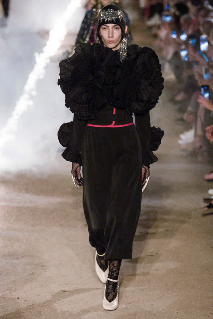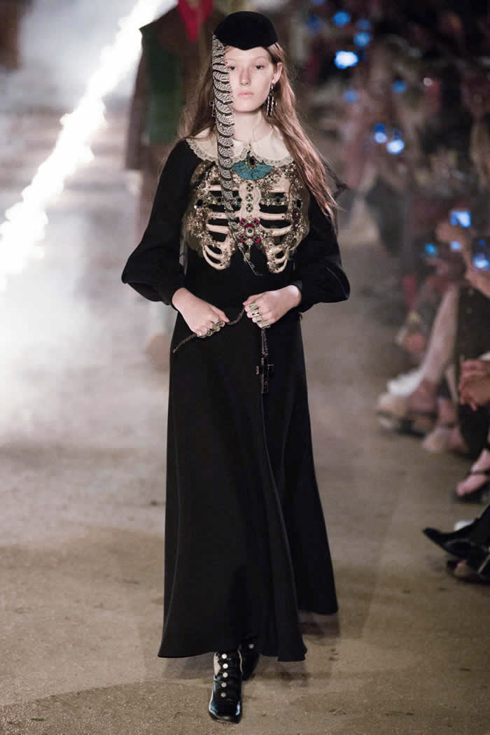Pour la nouvelle collection Gucci Croisière 2019, le directeur créatif de Gucci a choisi la nécropole romaine d’Alyscamps, dans la ville d’Arles, dans le sud de la France, comme cadre de son spectacle, et a profité pleinement de l’histoire scénique de la ville avec un parcours nocturne qui dépasse les temps et les lieux avec un ensemble de références anciennes et modernes.
