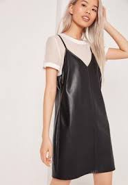 T-shirt blanc avec une robe cuir courte en noir