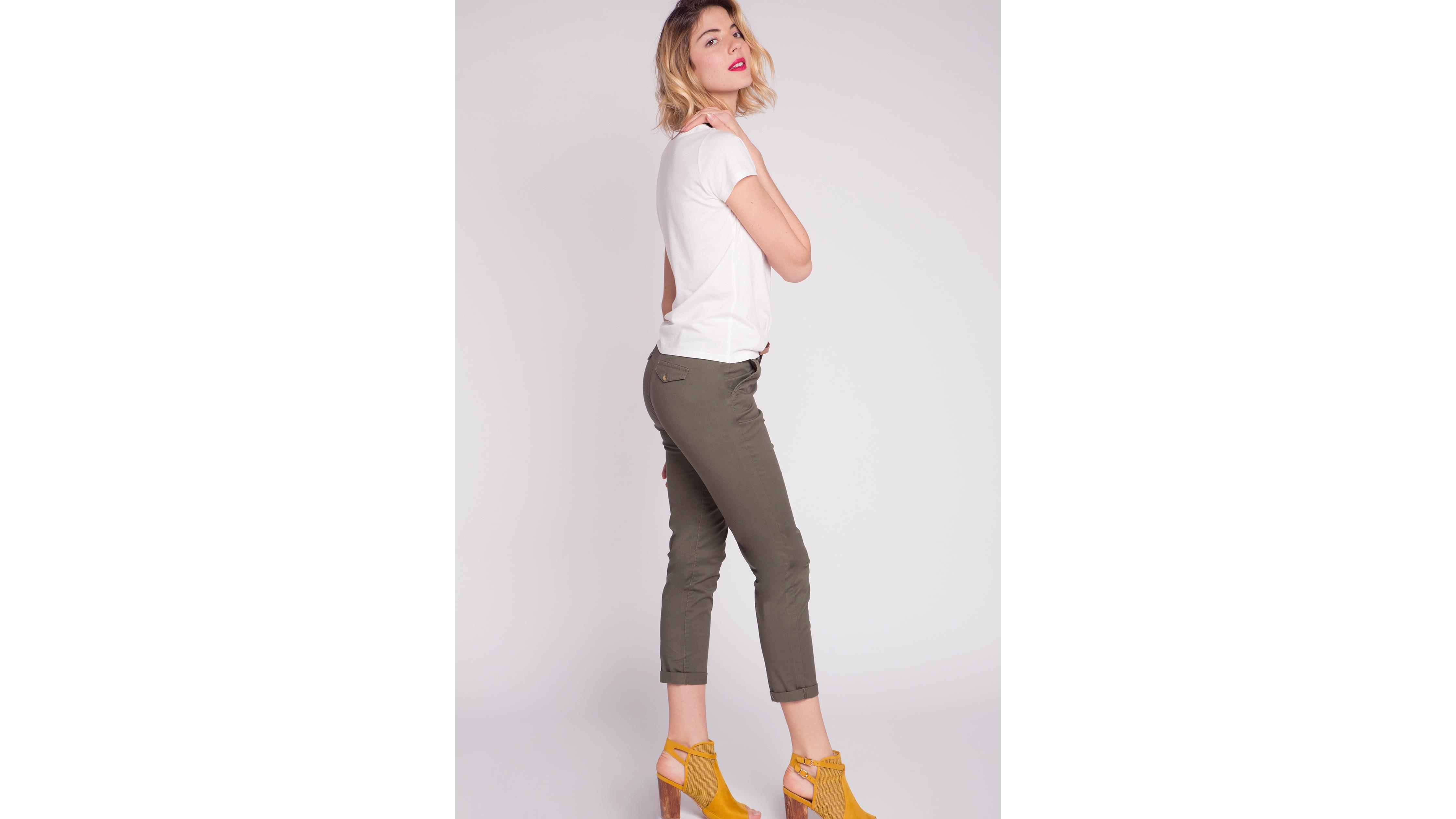 T-shirt blanc avec un pantalon classique vert kaki