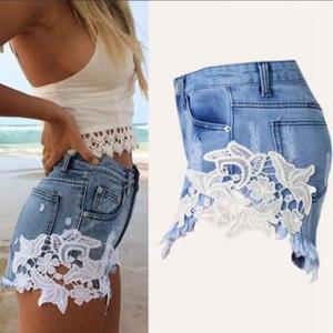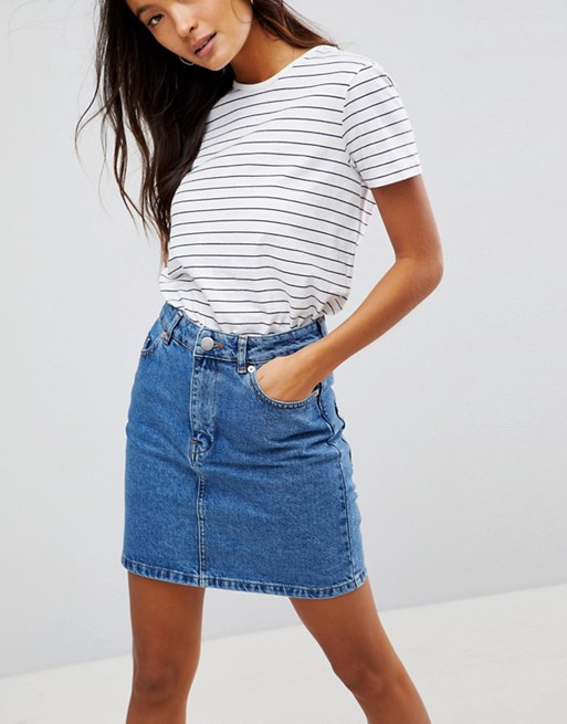 T-shirt blanc avec une jupe courte en jean