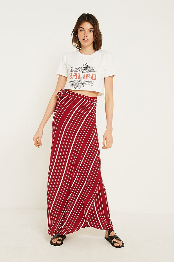 T-shirt blanc avec une jupe longue rouge