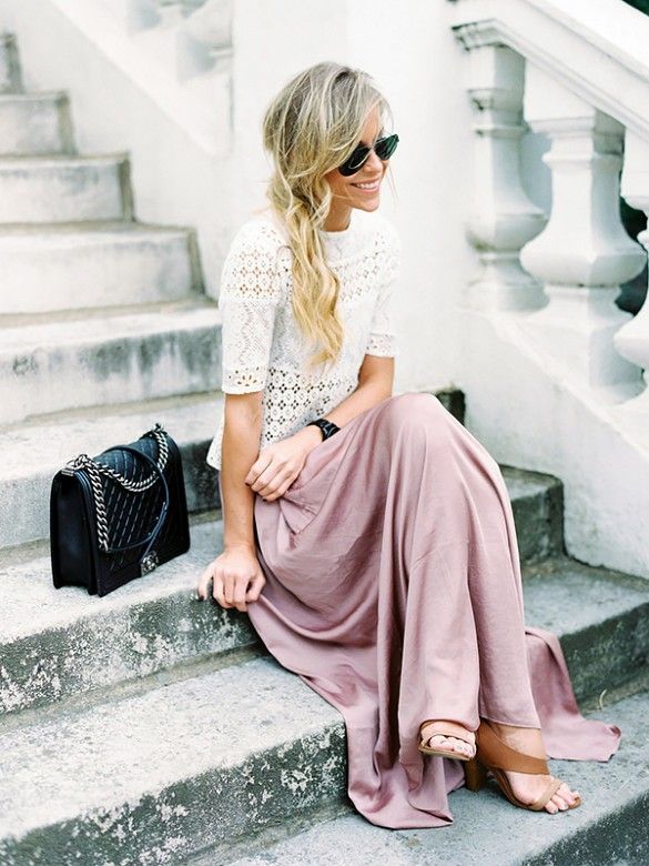 T-shirt blanc avec une jupe longue