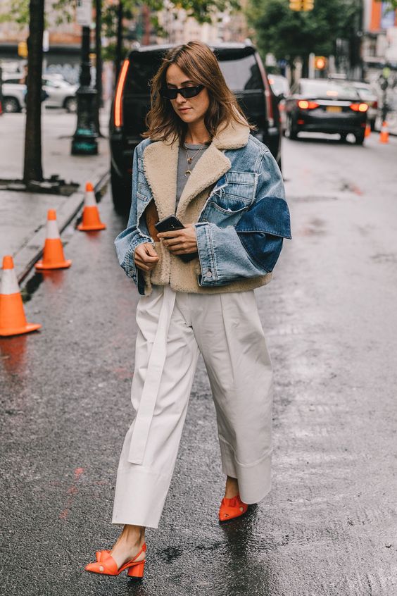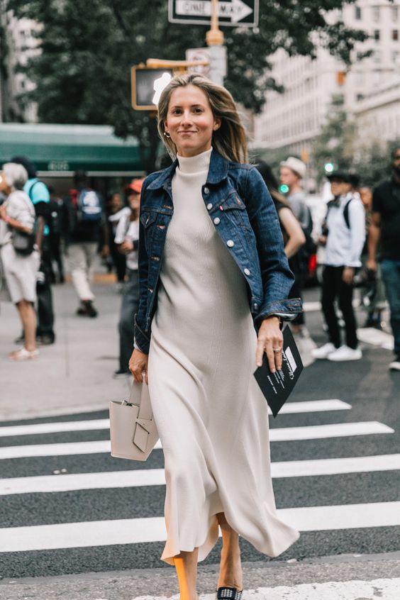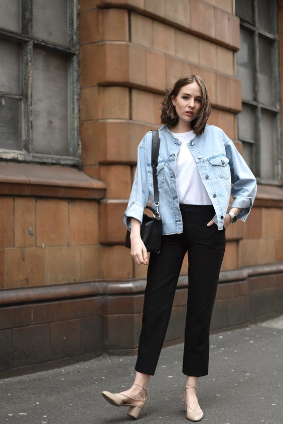 Il est vrai que la veste en jean tombe en désuétude. Ce qui était dans les années 90 se sentait un peu mal aimé au début du millénaire. Néanmoins, ce style a certainement fait un retour en force. Porter un joli pull en tricot torsadé sous votre veste et une paire de talons beiges donnera un look magnifique.